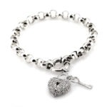 צמיד חוליות מכסף עם תליון לב משובץ זירקונים