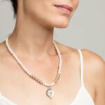 שרשרת חרוזי אגת וזהב עם תליון אגת גדול.